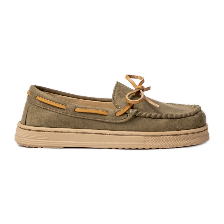 Inna marka Damskie Mokasyny Zamszowe zielone z kokardką