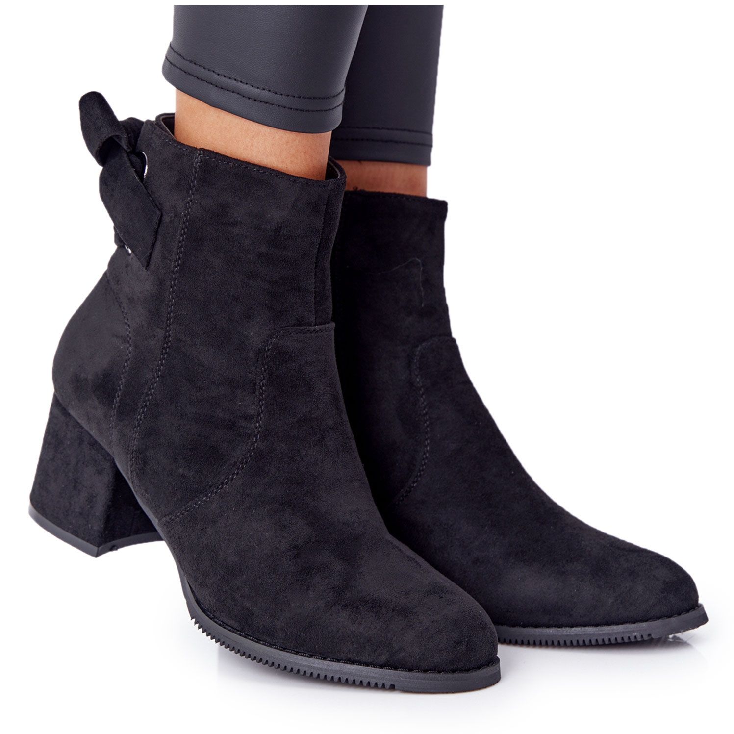 Szczegóły: PJ1 Damskie Ocieplane Botki Na Słupku Czarne Kayla