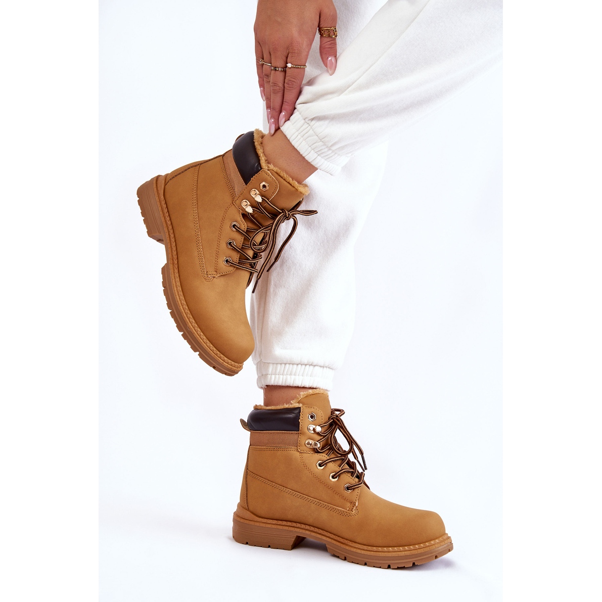 Inna marka Damskie Ocieplane Botki Trapery Camel Lonne brązowe