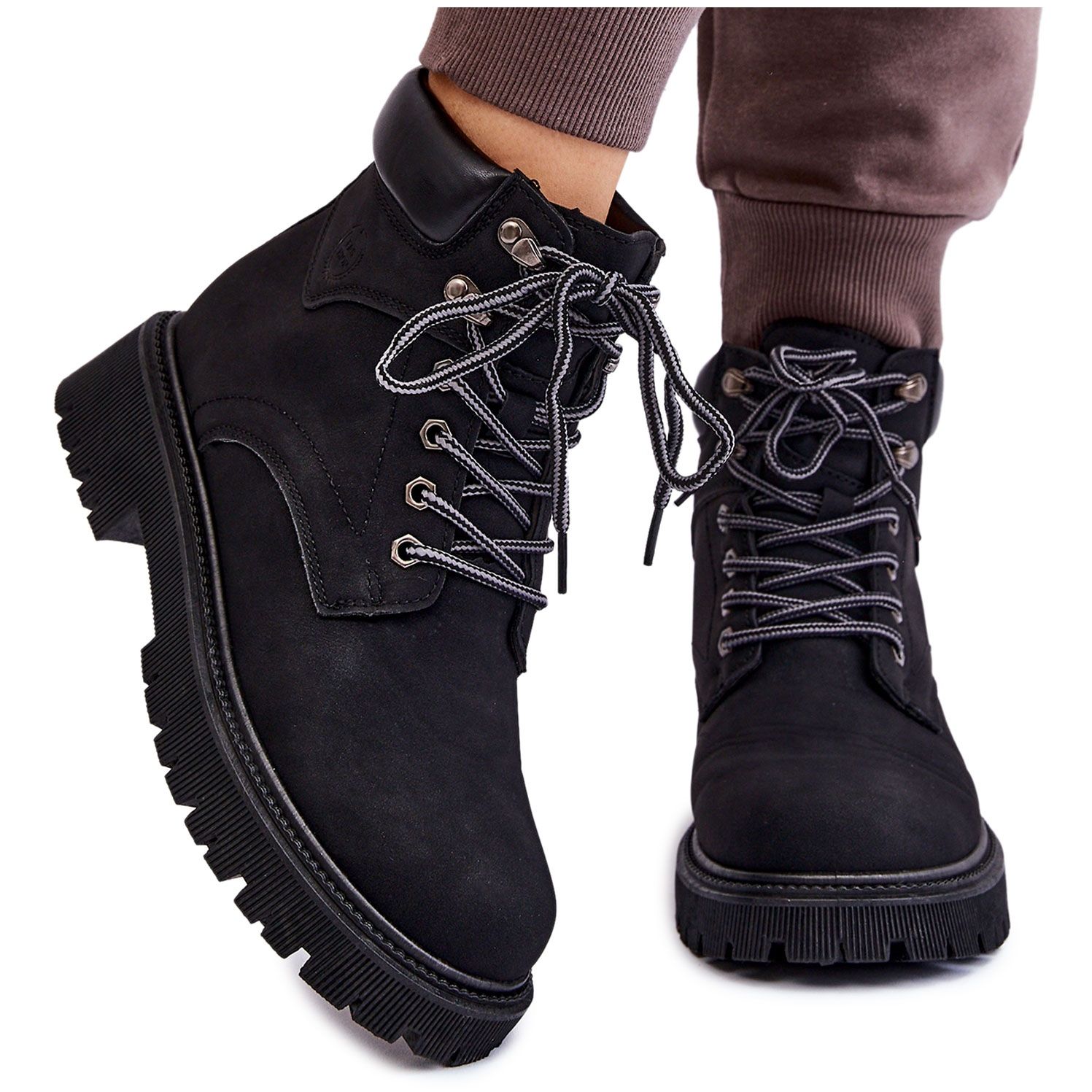 PG1 PG1 Damskie Ocieplane Botki Trapery Sznurowane Czarne Halfway