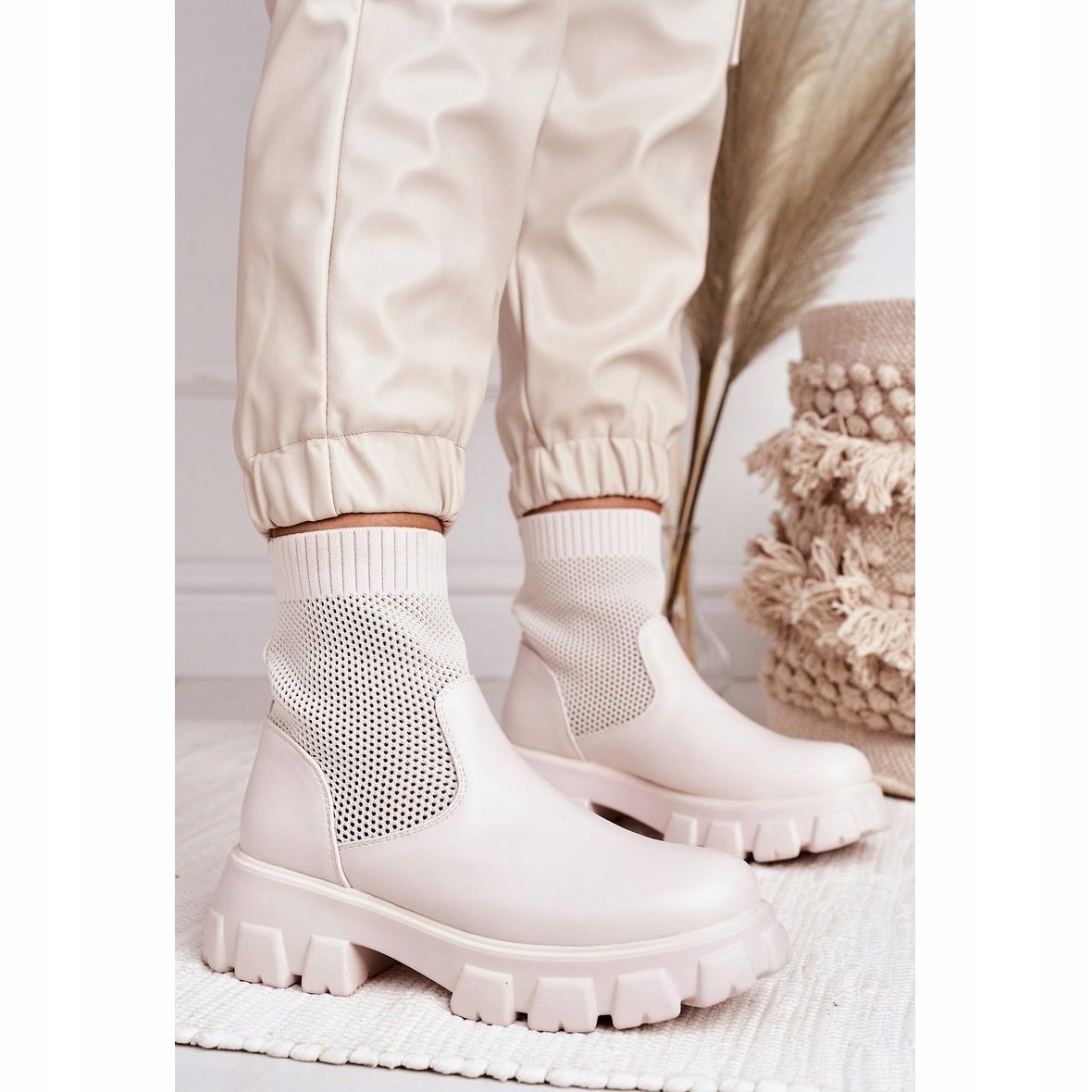 Inna marka Damskie Skarpetkowe Botki Workery Białe Stormy