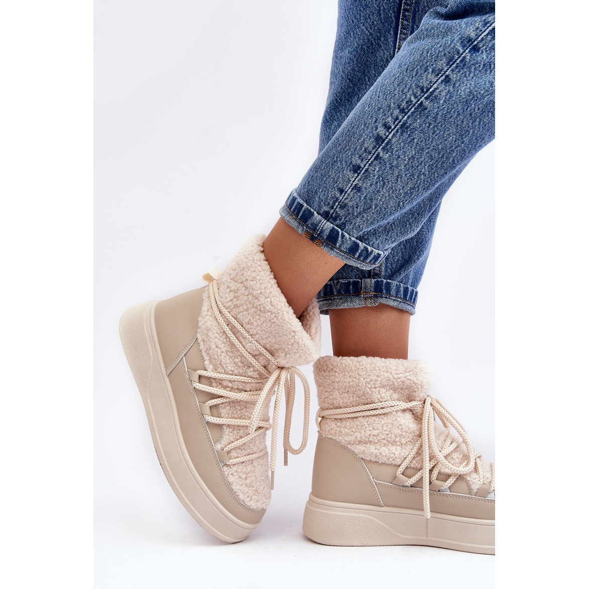 FG2 FG2 Damskie Śniegowce Na Platformie Jasnobeżowe Ahatissa beżowy