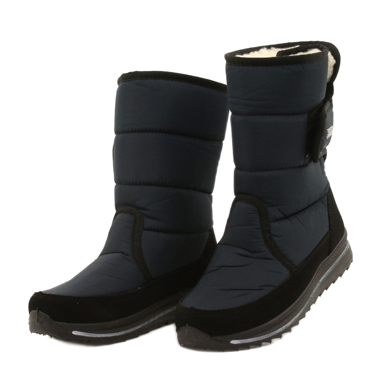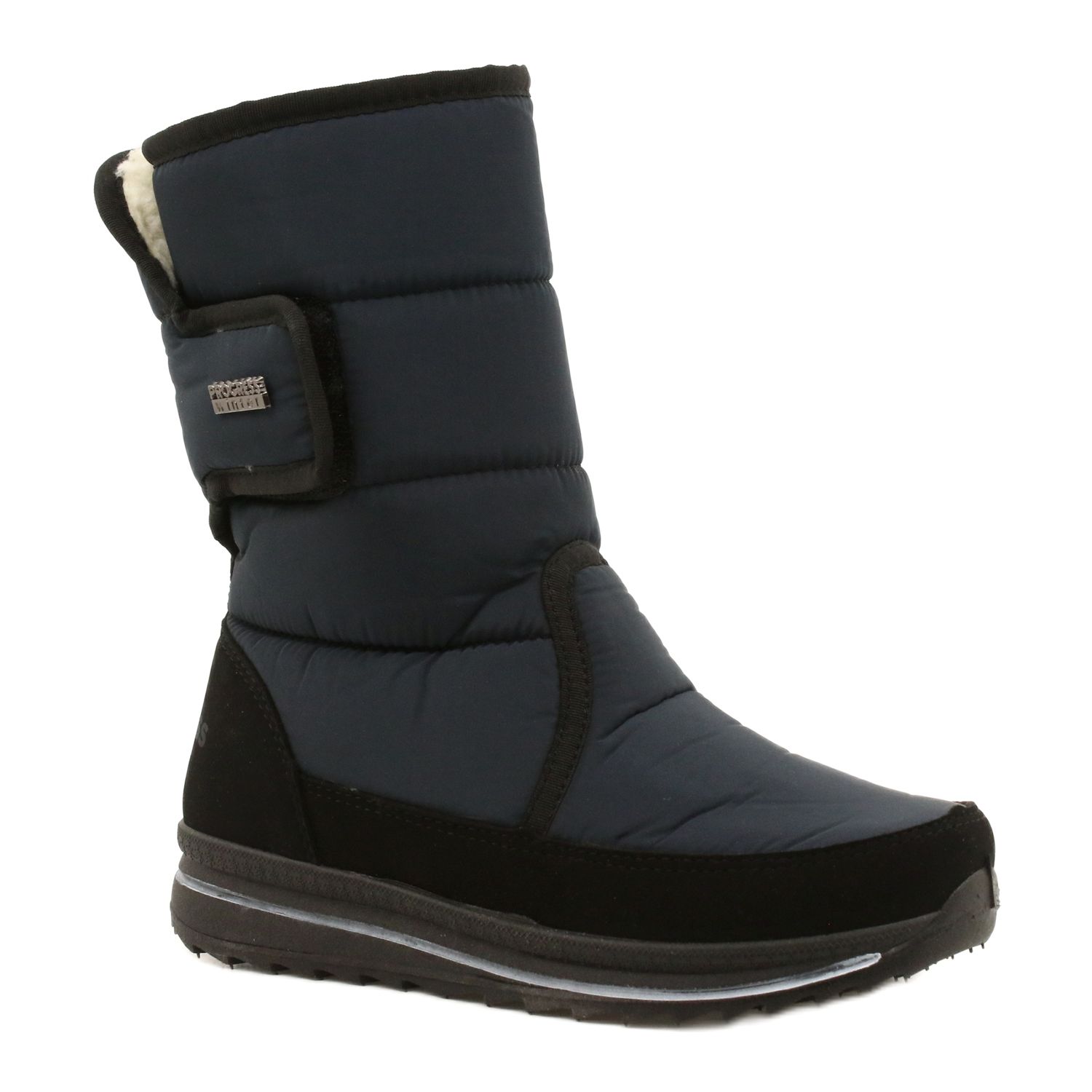 Damskie sportowe botki Progress PROGJ-21-08 — ciepłe, wygodne i stylowe na chłodniejsze dni. Granatowo-czarne wykończenie oraz miękkie futerko wewnątrz sprawiają, że to idealny wybór do codziennych, zimowych stylizacji. Cholewka z tkaniny i elementy przypominające skórę chronią przed zimnem, a gumowa podeszwa zapewnia przyczepność i wygodę przez cały dzień.