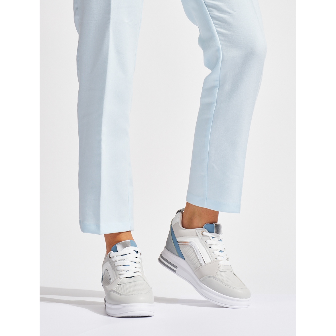 Szczegóły: Damskie szare sneakersy z ukrytą koturną
