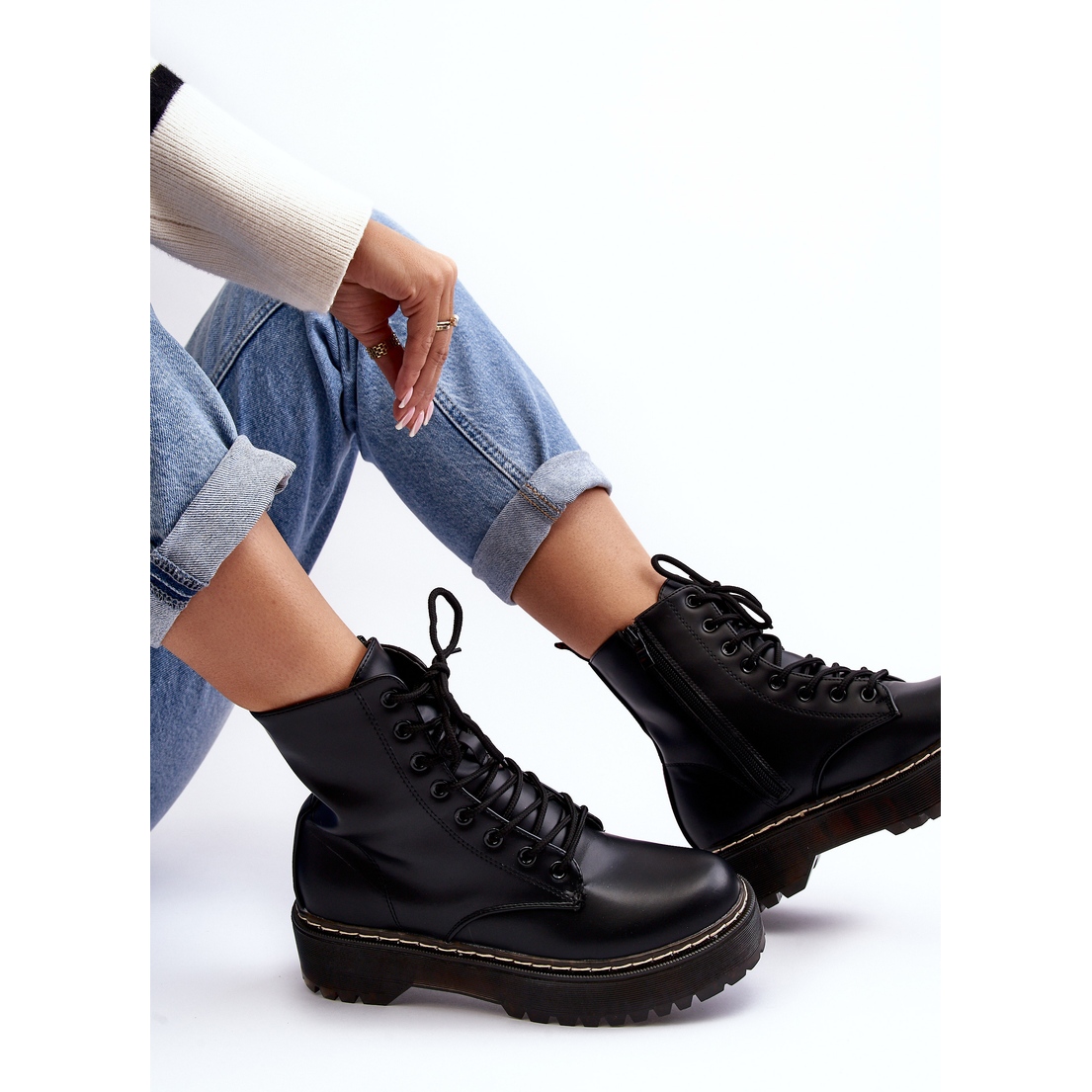 Szczegóły: Damskie Sznurowane Botki Trapery Czarne Maddis