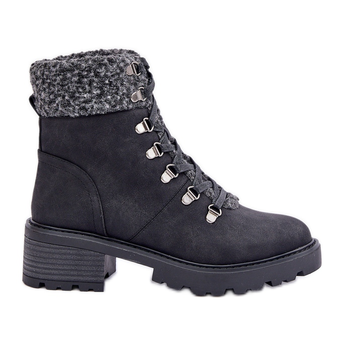 Szczegóły: Damskie Trapery Z Kożuszkiem Na Niskim Obcasie Czarne