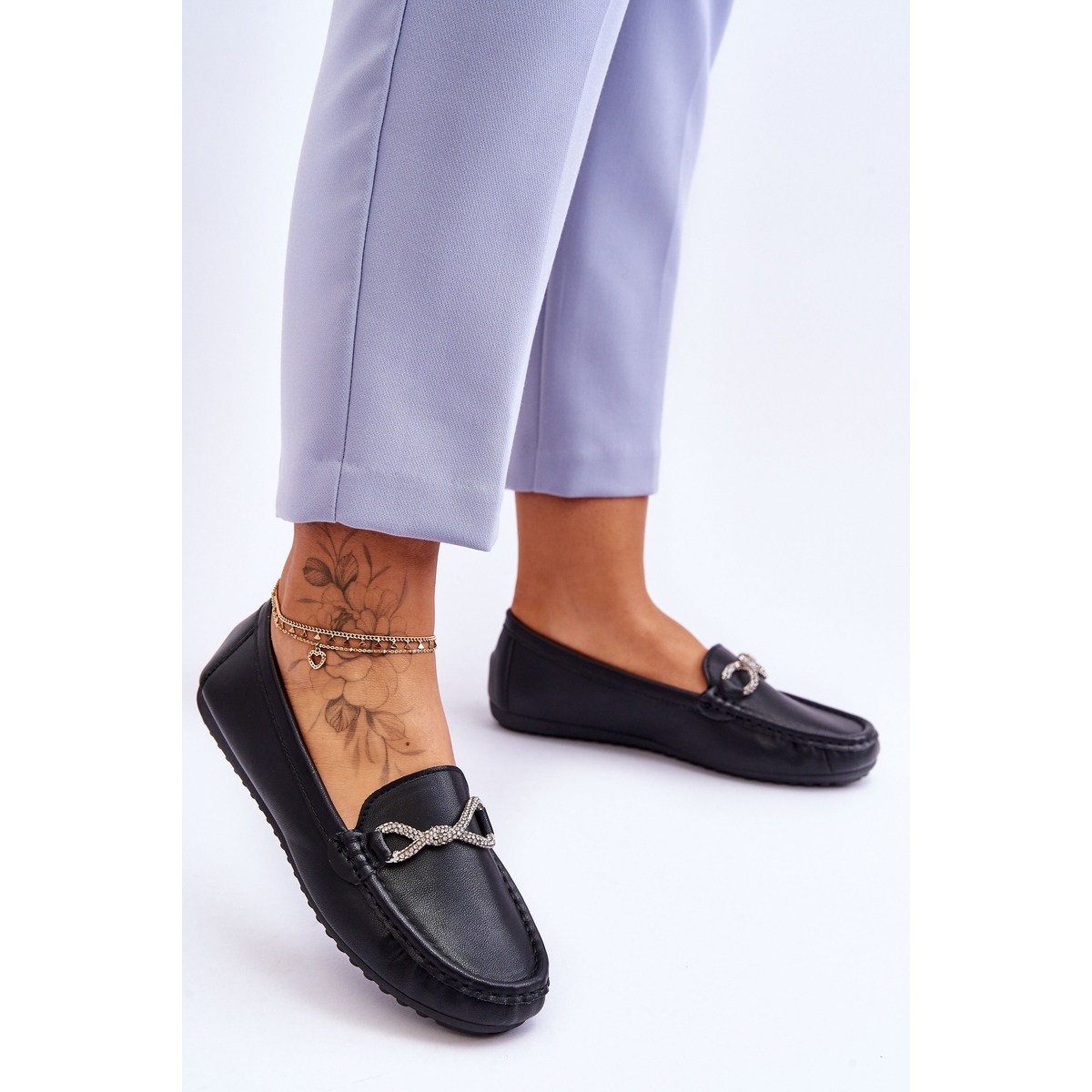 Szczegóły: FC3 Damskie Wsuwane Mokasyny Z Błyszczącą Ozdobą Czarne This Moment