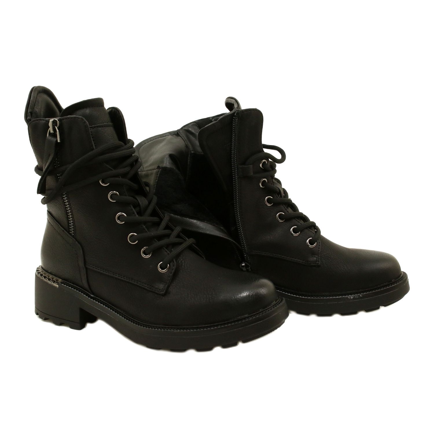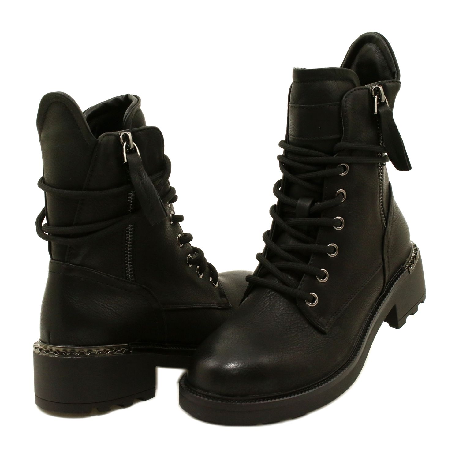 Eleganckie, uniwersalne czarne botki Evento 21BT35-4226 łączą wygodę z miejskim stylem. Wykonane ze skóry ekologicznej, ocieplone kocem obuwniczym, idealne na chłodniejsze dni. Zapięcie na zamek i sznurówki ułatwia dopasowanie i wkładanie, a ozdoba przy zapiętku dodaje subtelnego akcentu.