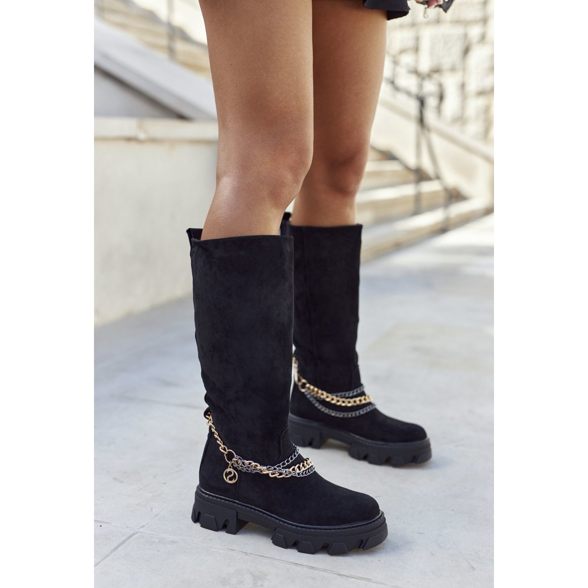 Wnętrze kozaków ocieplone jest przyjemnym kocem obuwniczym, zapewniającym doskonałą izolację termiczną nawet w chłodniejsze dni. Antypoślizgowa, gruba podeszwa wykonana z syntetycznego materiału gwarantuje bezpieczeństwo na różnych nawierzchniach oraz dodatkowo izoluje przed zimnem, co czyni te kozaki idealnym wyborem na zimowe spacery.