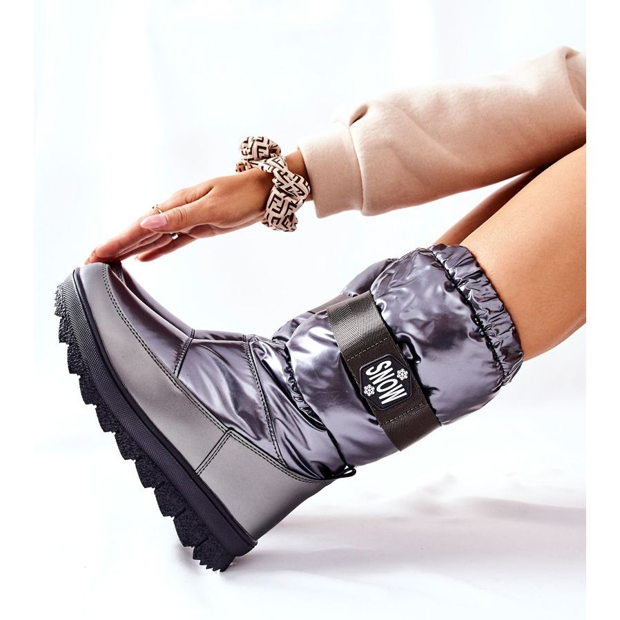 S.Barski S.Barski Damskie Wysokie Śniegowce Ocieplane Szare Eunousa srebrny