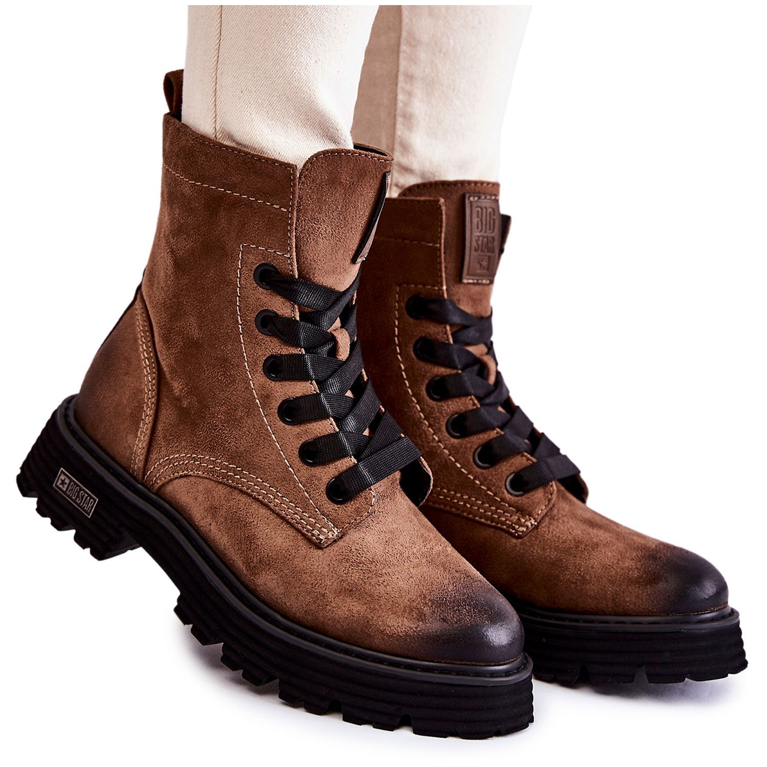 Szczegóły: Damskie Zamszowe Botki Big Star KK274504 Brązowe