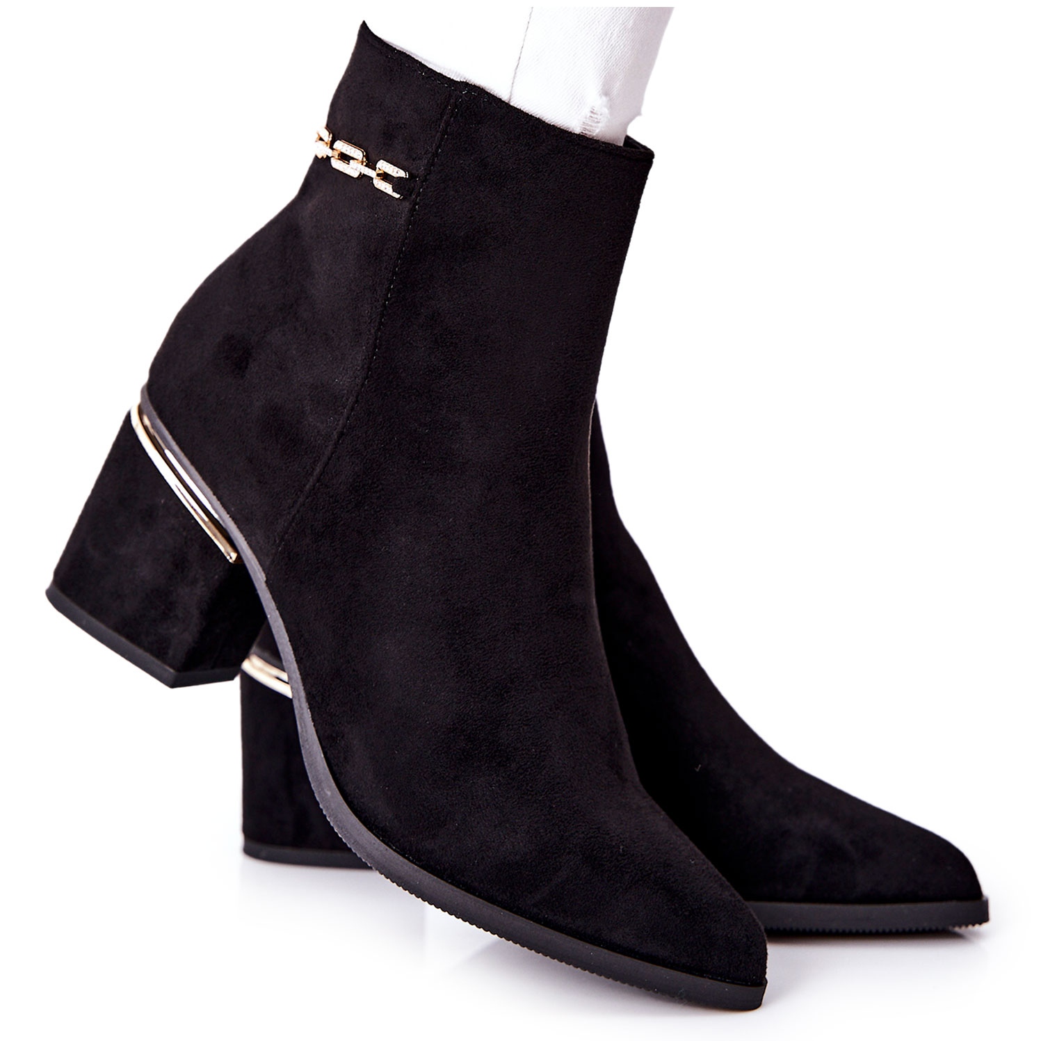 PS1 PS1 Damskie Zamszowe Botki Na Słupku Czarne One Step