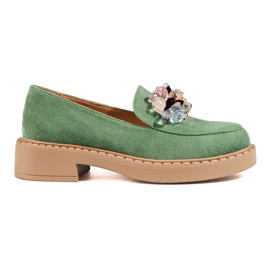 W. Potocki W. Potocki Damskie zamszowe mokasyny Potocki zielone