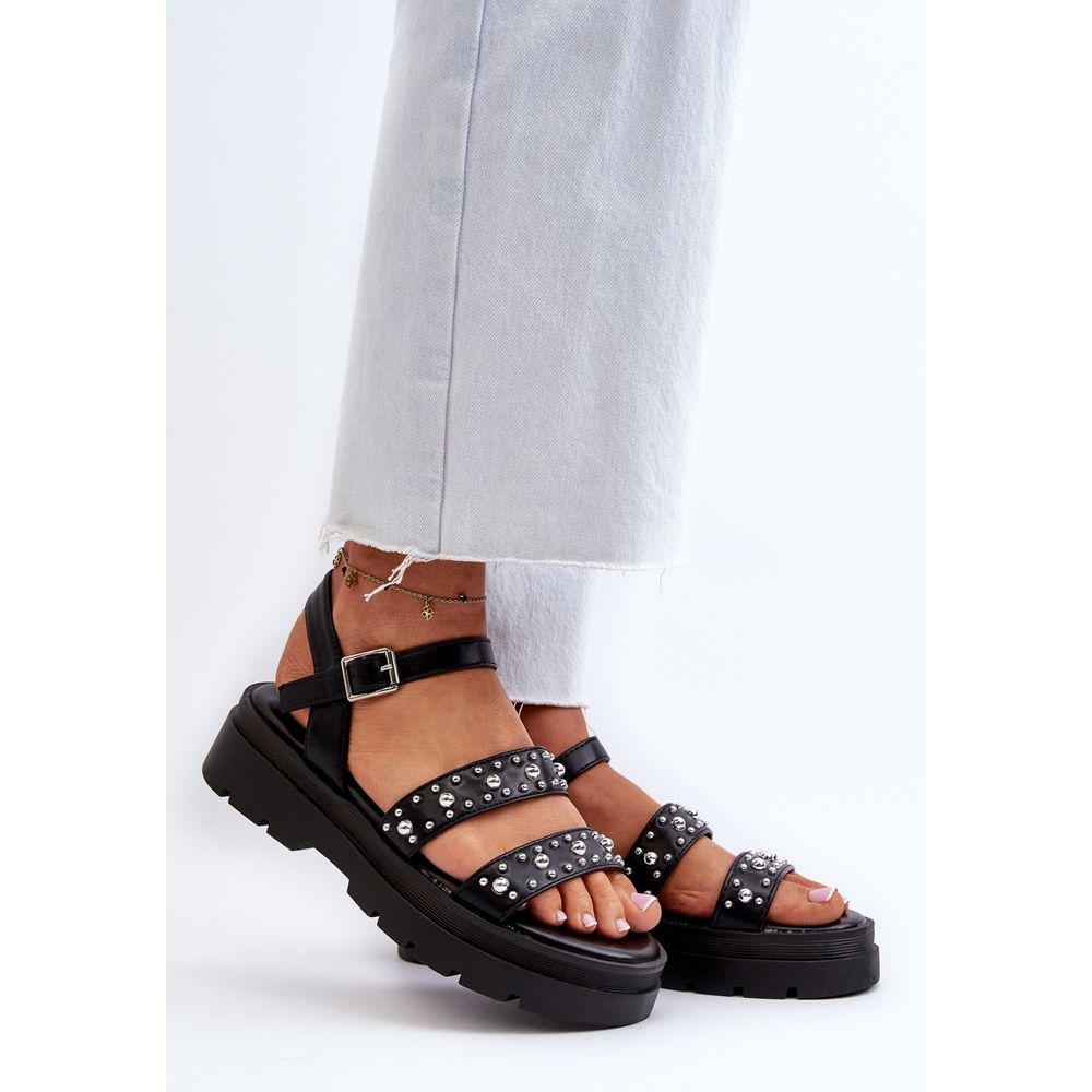 Inna marka Damskie Zdobione Sandały Eko Skóra Czarne Arcida
