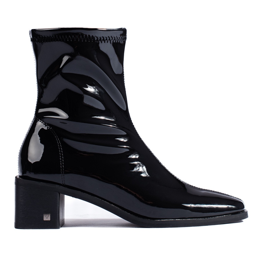 Vinceza Dopasowane botki damskie ze lakierowane skóry ekologicznej Vinceza czarne
