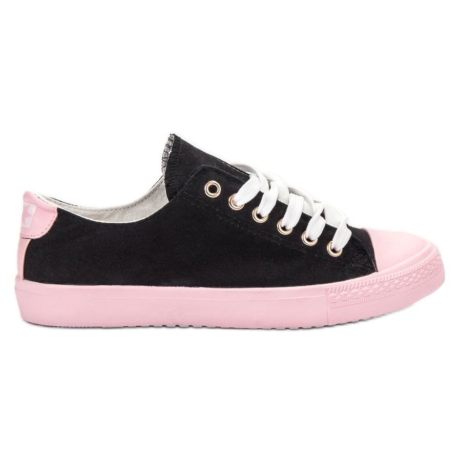 SHELOVET SHELOVET Dwukolorowe Trampki czarne różowe