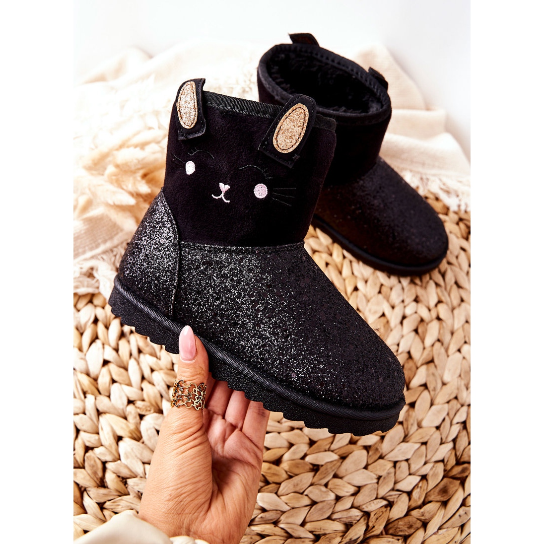 Odkryj wyjątkowe dziecięce śniegowce od Vinceza, które staną się nieodłącznym elementem garderoby Twojej małej księżniczki na zimowe dni! Wykonane z wysokiej jakości ekozamszu, te czarne botki łączą stylem nowoczesność z funkcjonalnością. Częściowo pokryte subtelnym brokatem, z pewnością przypadną do gustu każdej dziewczynce, dodając jej odrobinę błysku i wyjątkowego charakteru.