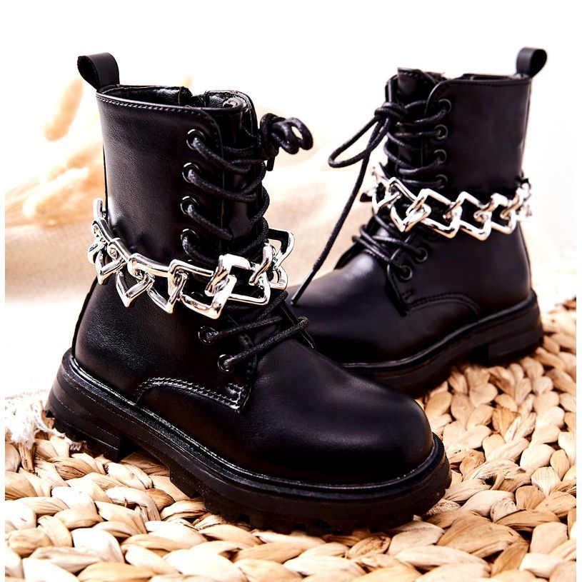FR1 FR1 Dziecięce Botki Z Łańcuchem Czarne Moci