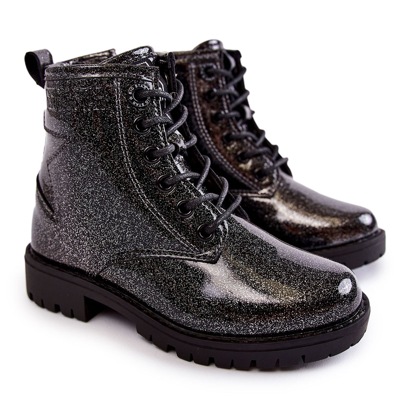 Dziecięce lakierowane botki Big Star II374047 — czarno-srebrne