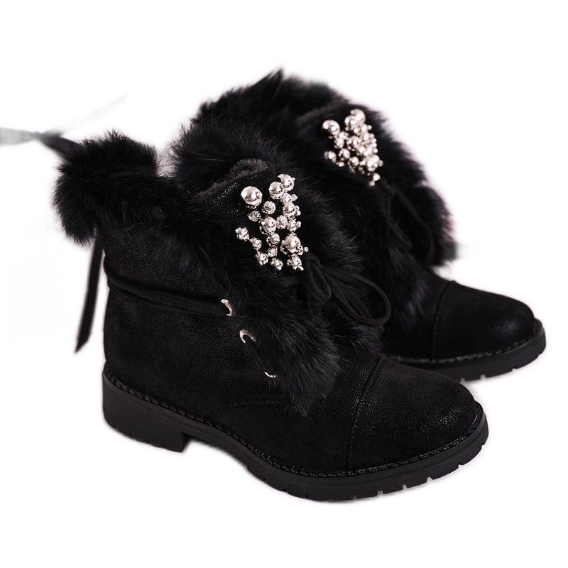 MSMG MSMG Dziecięce Ocieplane Botki Z Futerkiem Nubuk Czarne Ella