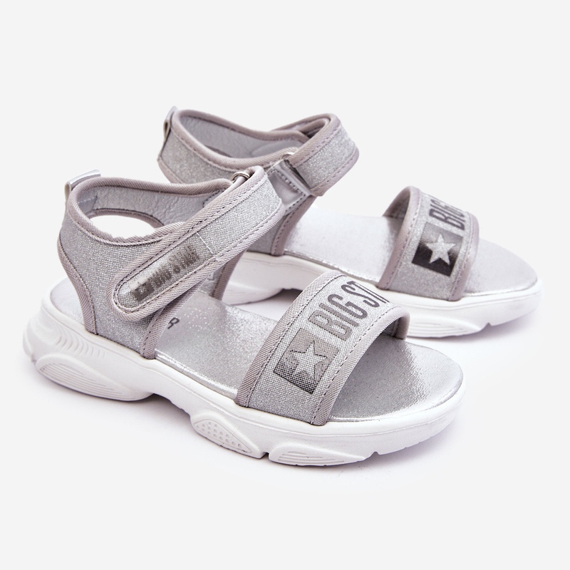 Szczegóły: Dziecięce Sandałki Na Rzep Big Star LL374194 Srebrne srebrny