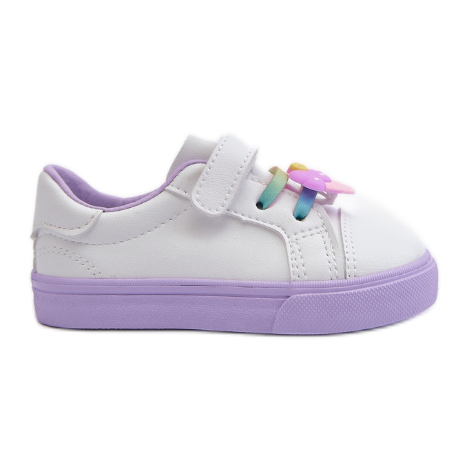 Szczegóły: Dziecięce Sneakersy Trampki Z Przypinką Biało-Fioletowe Pennyn