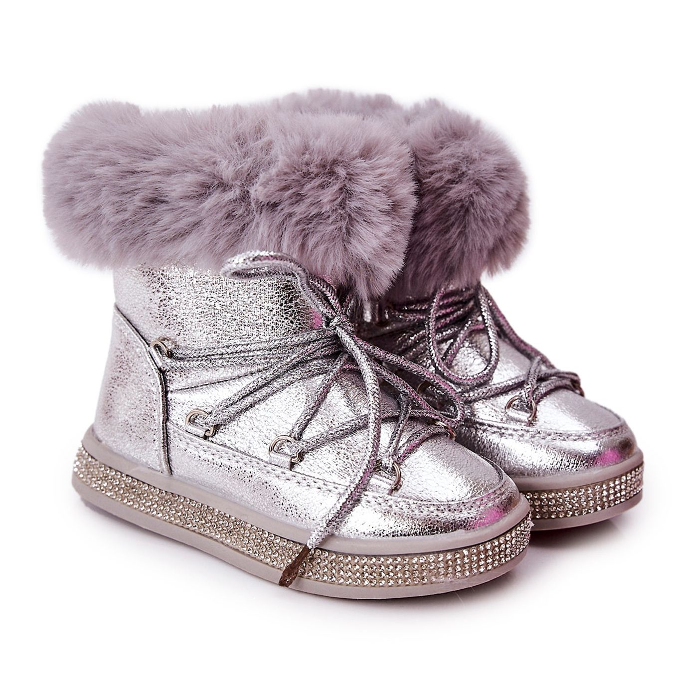 FR1 FR1 Dziecięce Śniegowce Z Futerkiem Srebrne Grandis srebrny