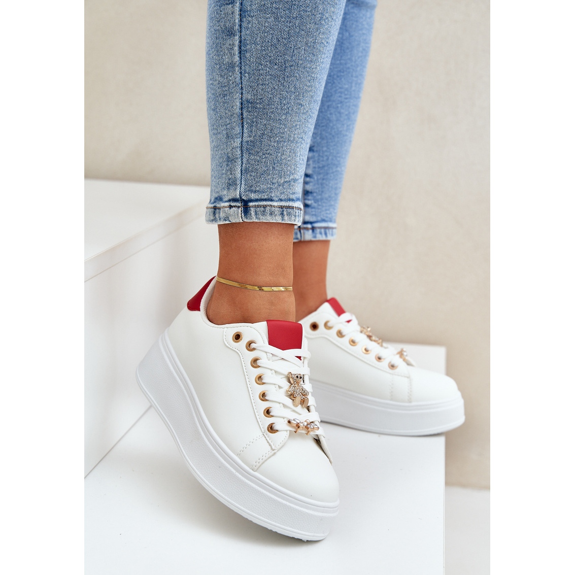 Szczegóły: Eko Skórzane Sneakersy Z Przypinkami Biało-Czerwone białe