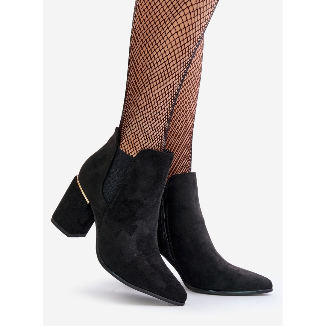 Inna marka Eko Zamszowe Botki Na Słupku Ocieplane Czarne Daivine