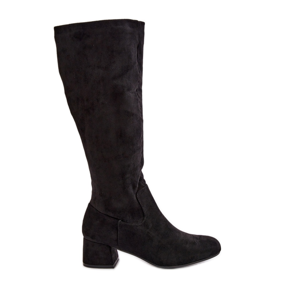 Inna marka Eko Zamszowe Kozaki Damskie Przed Kolano Na Zamek Czarne Elitara