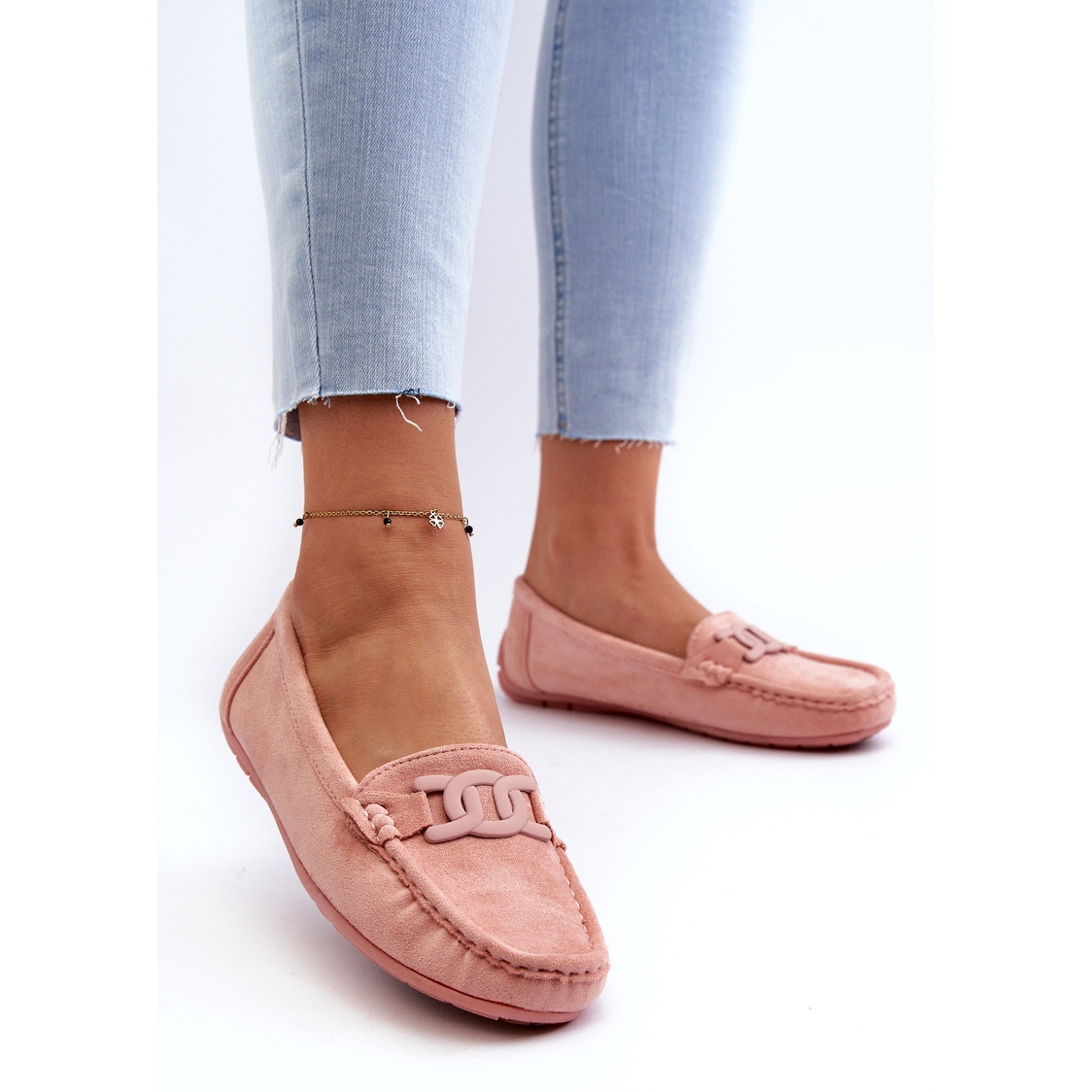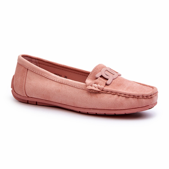 Odkryj urok i wygodę jasnoróżowych eko-zamszowych mokasynów damskich, które stanowią idealny dodatek do każdej kobiecej stylizacji! Wykonane z wysokiej jakości eko zamszu, charakteryzują się miękkością i przyjemnością noszenia. Na przodzie butów umieszczona jest elegancka ozdoba w postaci łańcucha z tworzywa sztucznego, która nadaje im unikalnego charakteru.