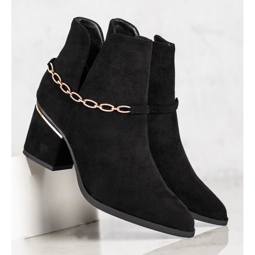 Seastar Seastar Eleganckie Botki Z Łańcuszkiem czarne