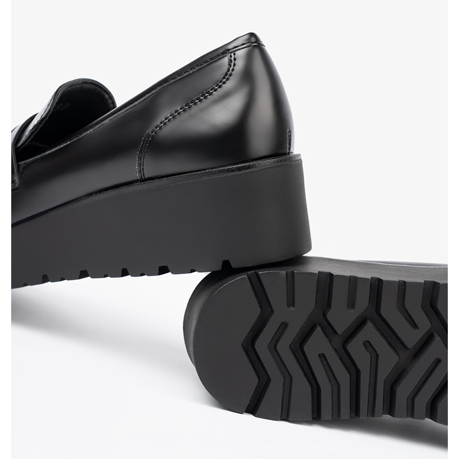 Szczegóły: Shelvt Eleganckie czarne mokasyny na grubej podeszwie