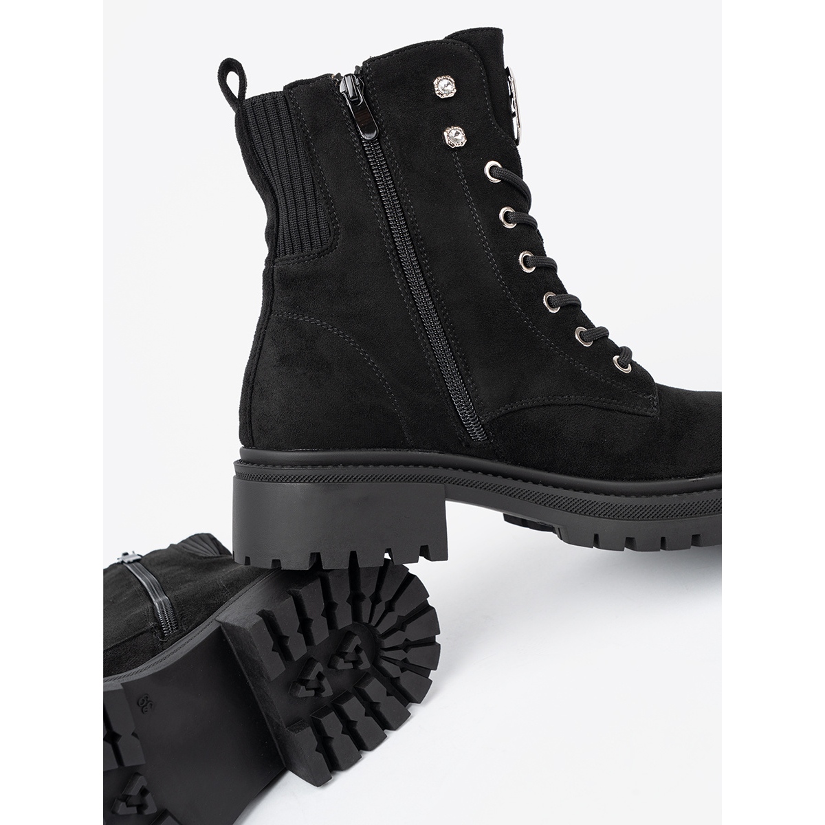Szczegóły: Shelvt Eleganckie czarne workery z błyszczącymi kryształkami