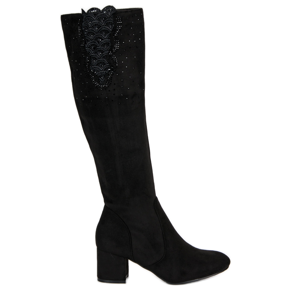 Szczegóły: Eleganckie kozaki na obcasie czarne