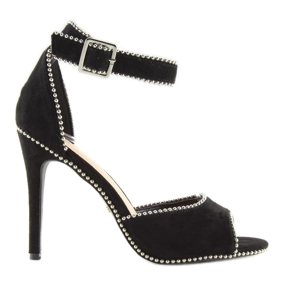 Inna marka Eleganckie sandałki na szpilce czarne NF-24P Black