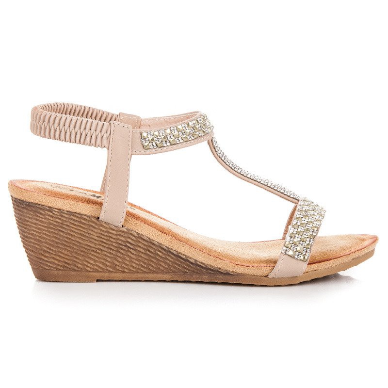 Fama Fama Eleganckie sandały na koturnie brązowe