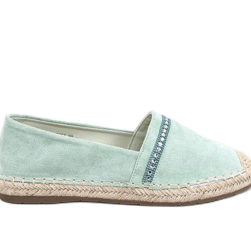 Odkryj niezwykły urok zamszowych espadryli damskich Green w intensywnym zielonym kolorze. Ten wyjątkowy model wyróżnia się subtelną aplikacją z kamieni, która dodaje mu niepowtarzalnego charakteru, sprawiając, że trudno przejść obok nich obojętnie.