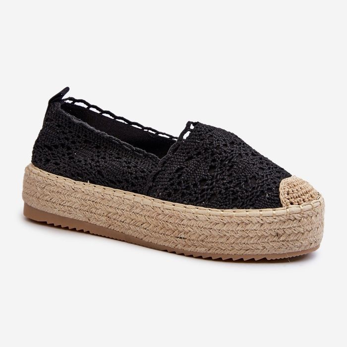 Inna marka Espadryle Damskie Koronkowe Na Platformie Czarne Elarose