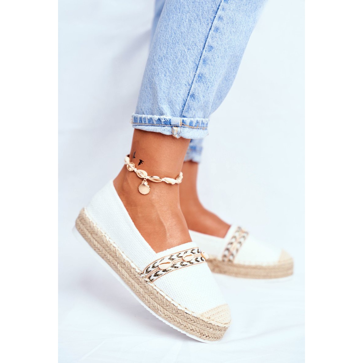Szczegóły: HAN Espadryle Damskie Na Platformie Lniane Białe Mindi