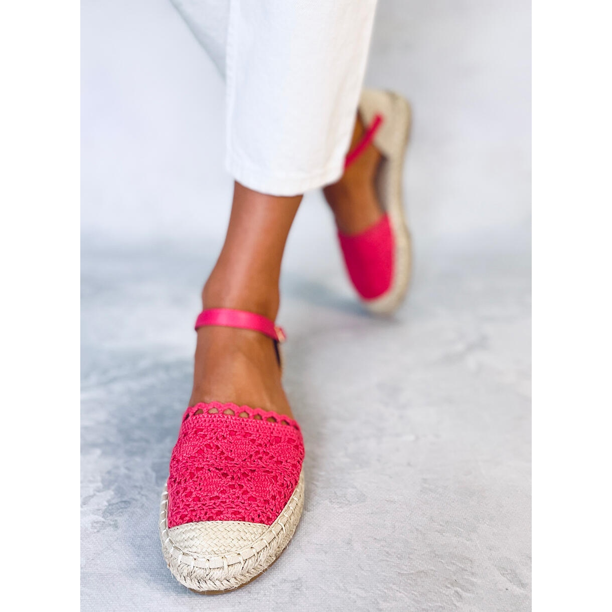 Szczegóły: Espadryle koronkowe malinowe L-1067 Red różowe