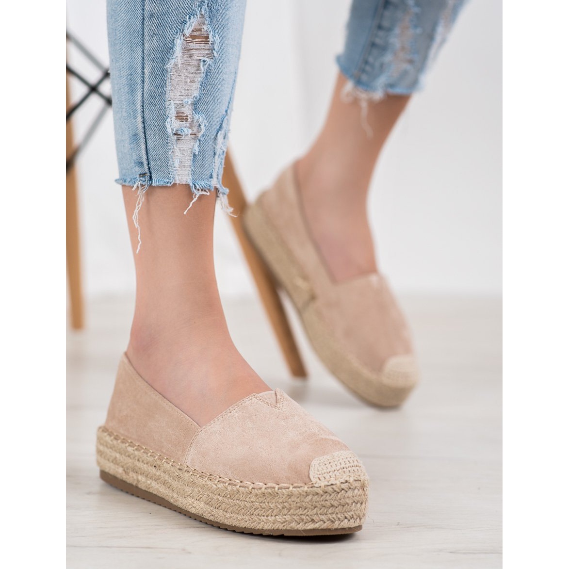 SHELOVET SHELOVET Espadryle Na Platformie brązowe