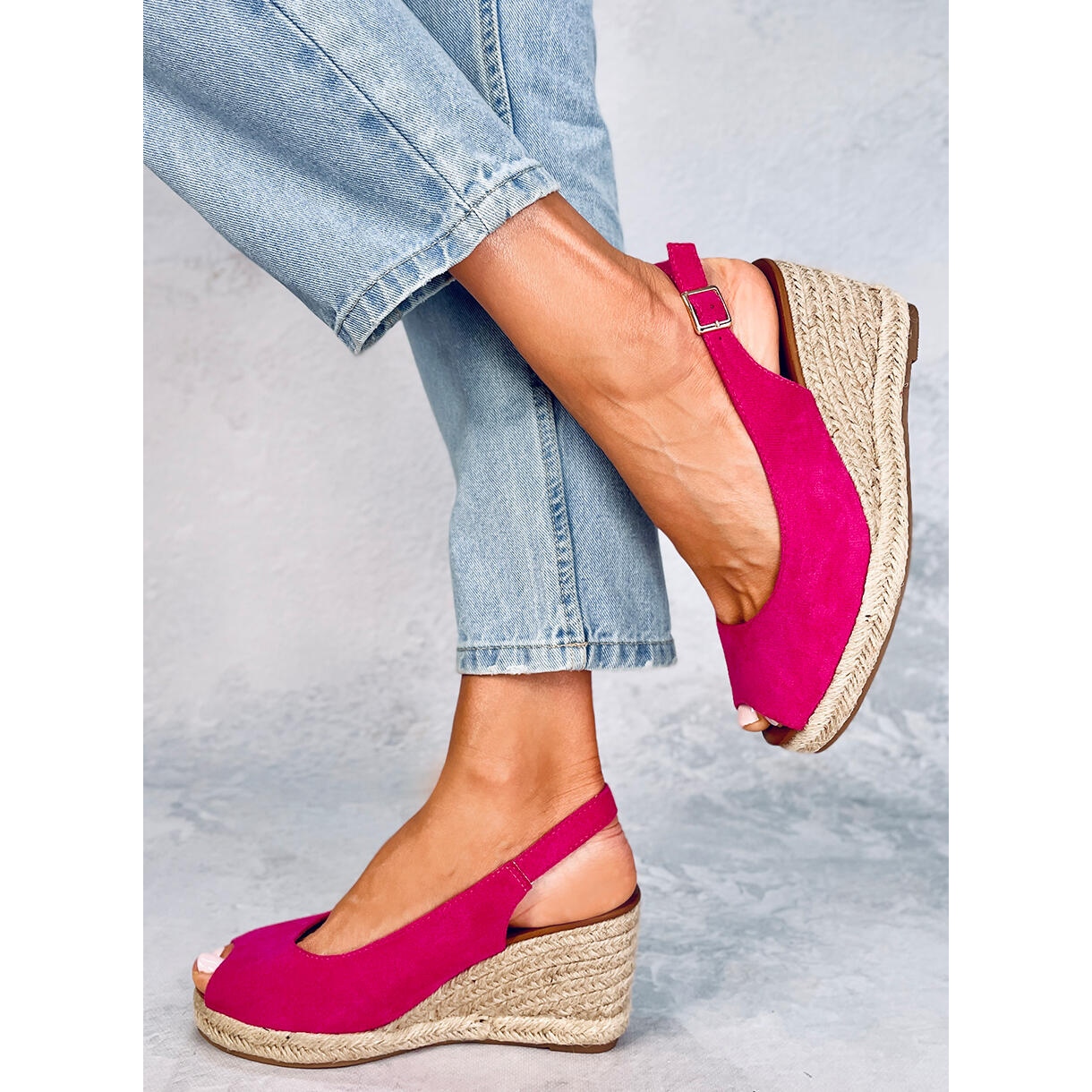 Inna marka Espadryle open toe na koturnie Nevil Fuchsia różowe