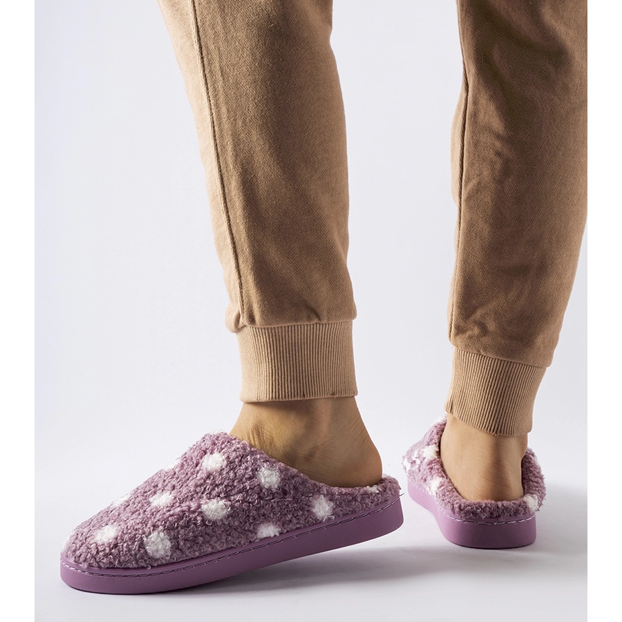 Inna marka Fioletowe ciepłe kapcie w białe kropki