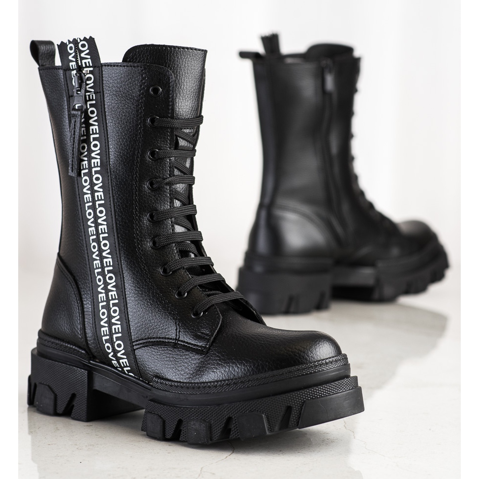 Szczegóły: SHELOVET Glany Z Eko Skóry Love czarne
