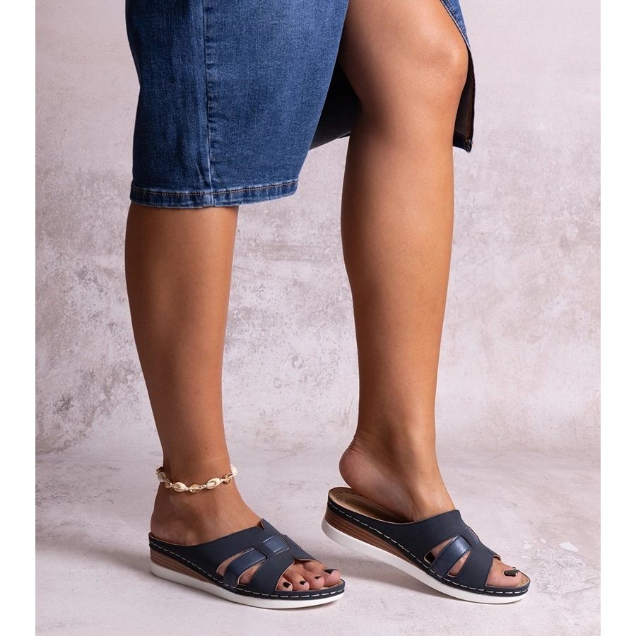 Inna marka Granatowe lekkie klapki na niskiej koturnie Mifsuda niebieskie