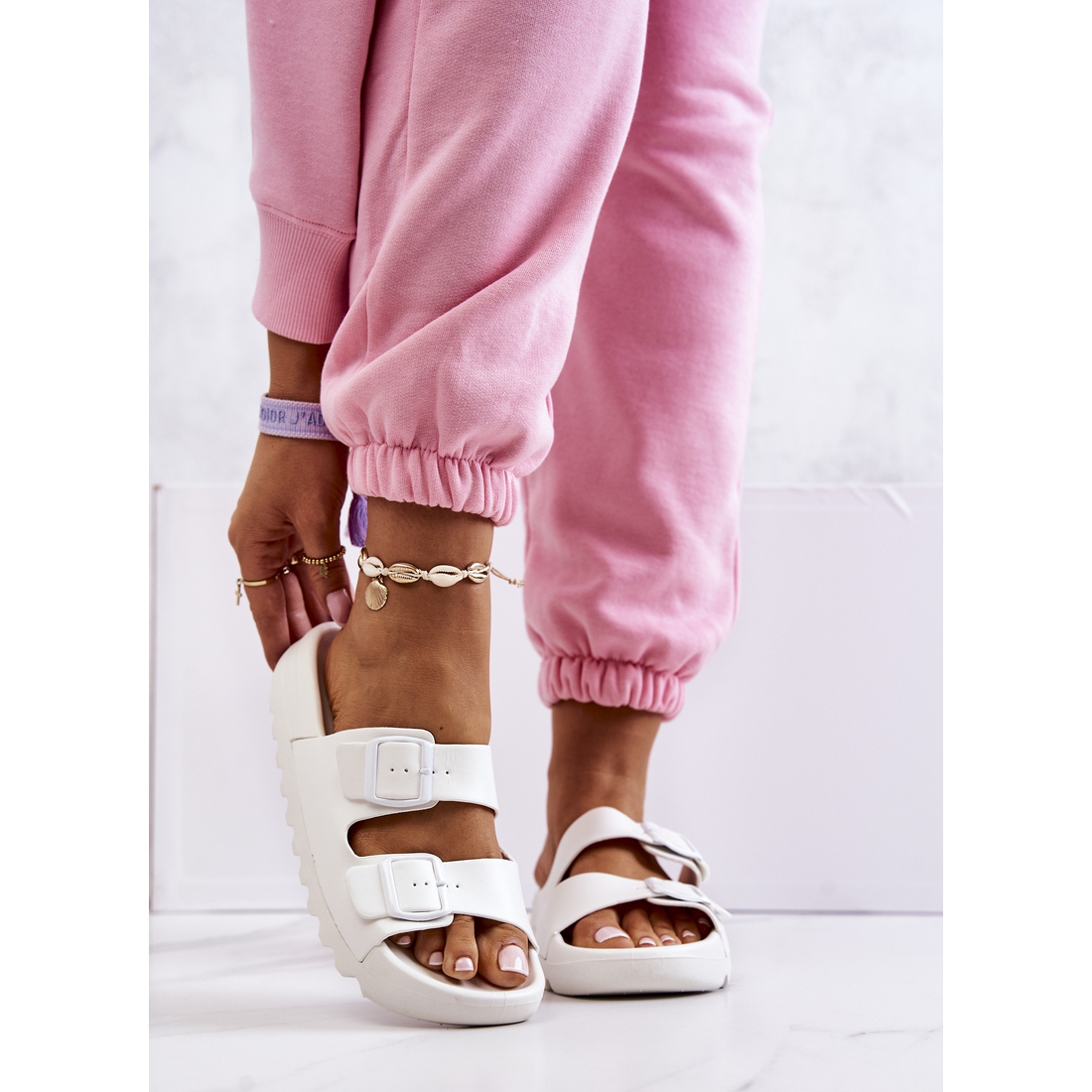 Szczegóły: PS1 Gumowe Klapki Na Platformie Białe Westie