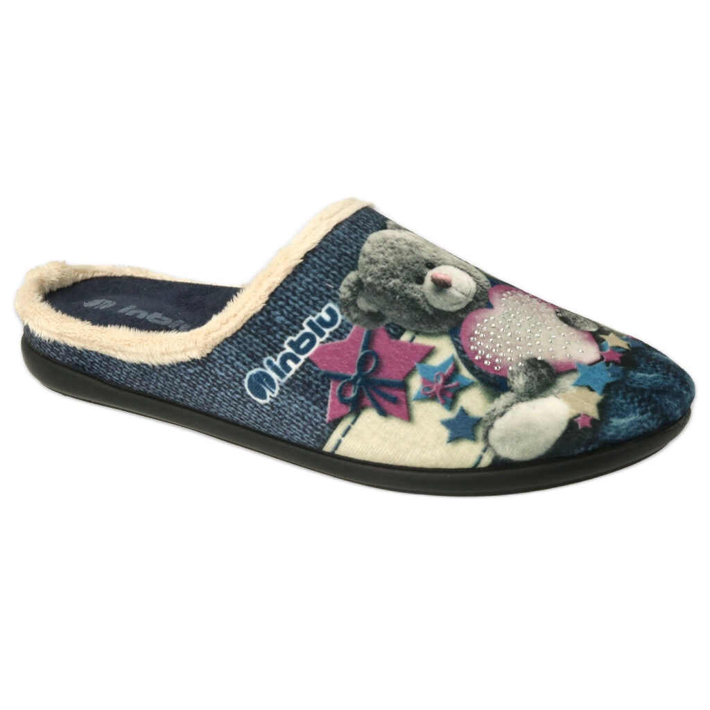 Szczegóły: Inblu kapcie damskie 155D210 aplikacja misia z sercem niebieskie