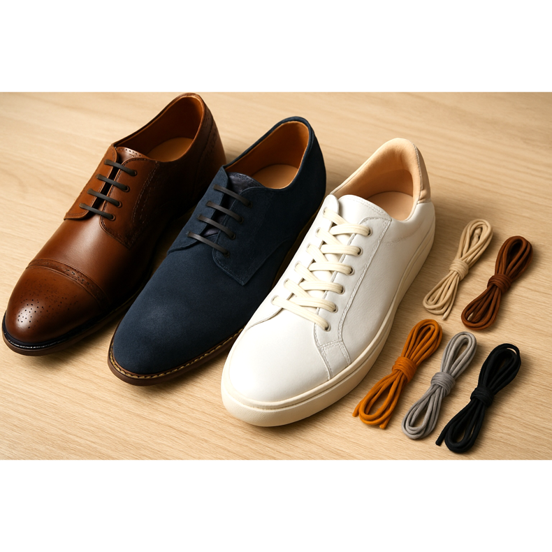 - Brązowe buty → brązowe sznurowadła (dopasuj odcień — jasnobrązowe do jasnych butów, ciemnobrązowe do ciemnych)