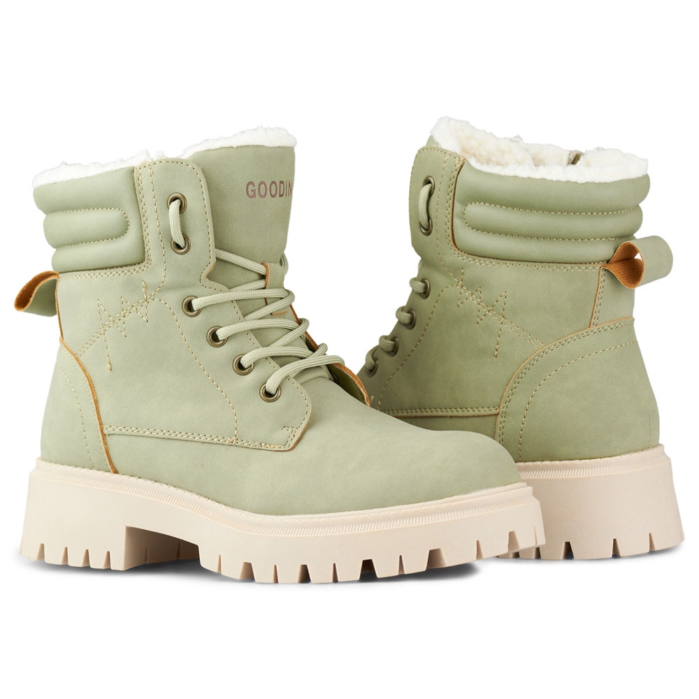 Lekko sportowe, a jednocześnie kobiece trapery w modnym, jasnozielonym odcieniu. Idealne na chłodniejsze dni — łączą wygodę typową dla traperów z ociepleniem i subtelną platformą, która dodaje kilka centymetrów bez rezygnacji z komfortu.